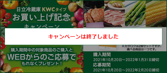 日立冷蔵庫 KWCタイプ お買い上げ記念キャンペーン グルメカタログギフトプレゼント!(キャンペーンは終了しました)