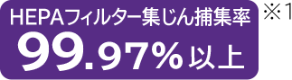 ※1 定格風量で0.3μmの微粒子を99.97%以上集じん。JIS Z 8122に規定されたHEPAフィルター単体での性能であり、部屋全体の除去性能とは異なります。 |
