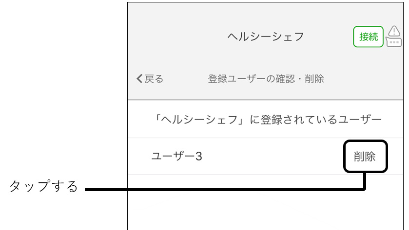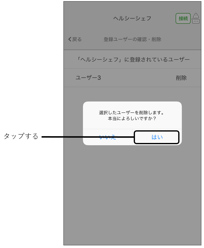 削除したいユーザー名の右側の「削除」をタップして、「はい」を選ぶ