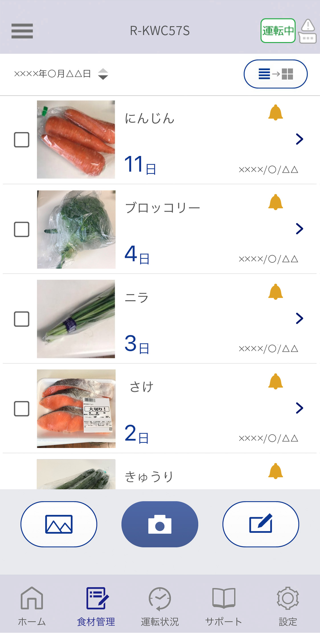 保存する食材をスマホで撮影し記録すれば、購入日や経過日数を一覧で確認することができます。賞味・消費期限を登録しておけば、リマインダー機能によりプッシュ通知でお知らせします。