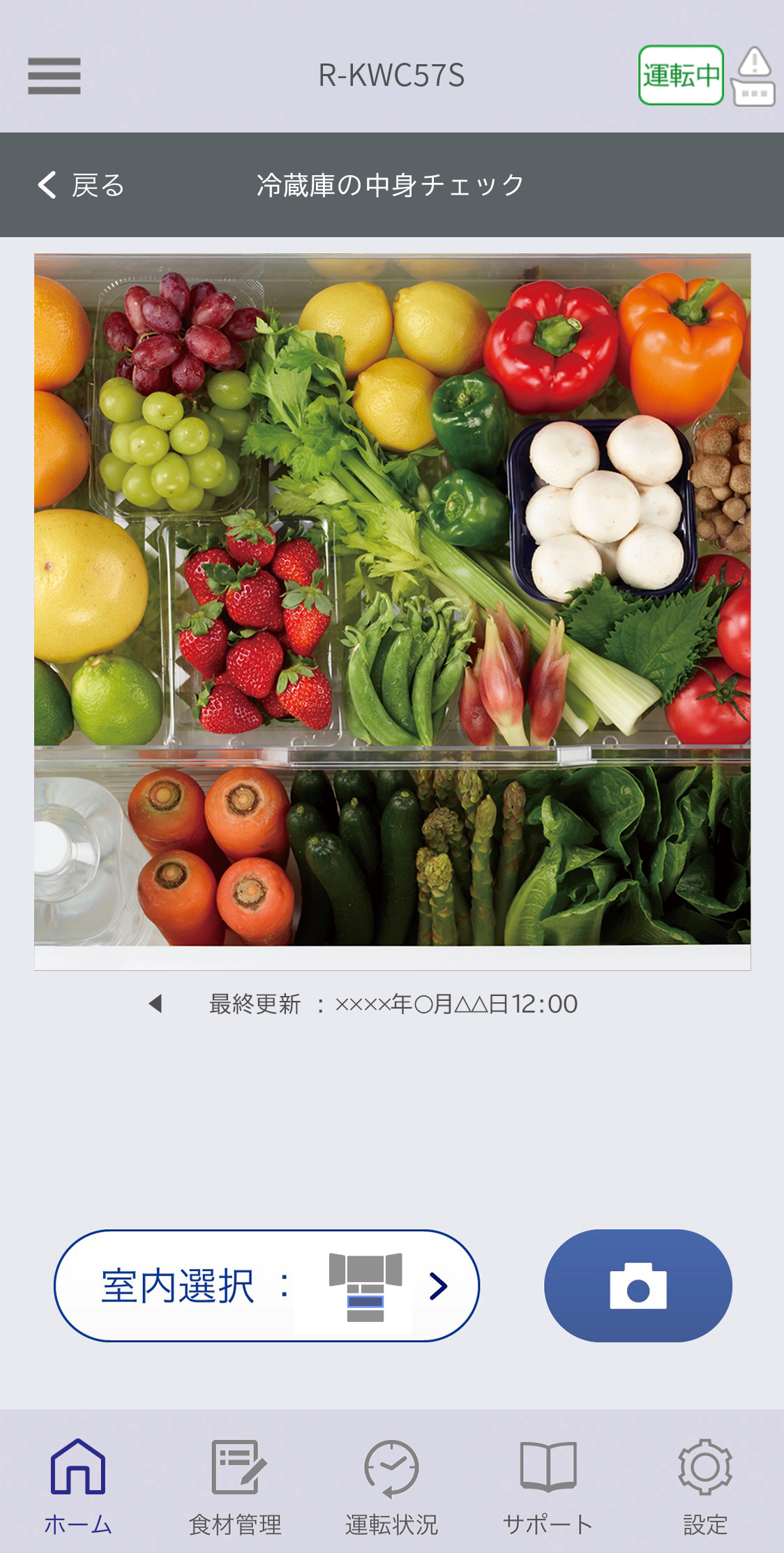 野菜室(上段切替室「野菜」設定時)の画像記録