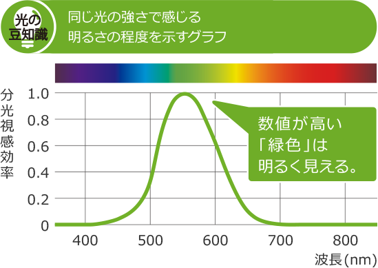 白色に加え、緑色のLEDライトを採用。緑色はもっとも明るく感じる波長に近く、照らされたごみとごみの影の明暗の差(コントラスト)が大きくなるため、ごみが見えやすくなります。さらに、合計7灯の光を効率的に集める設計のレンズで前方を照らします。これにより、暗いところはもちろん明るいところでも、見えにくかったごみを浮かび上がらせます。