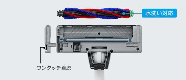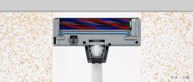 回転ブラシをヘッドの前側に近づけて配置することで、壁ぎわのごみもスッキリ。