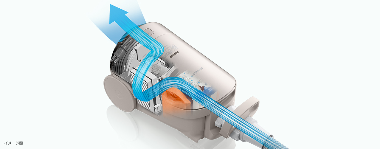高集じんフィルターと高気密モーターケースなどによって、 微細なごみも捕集し、排気をきれいにします。