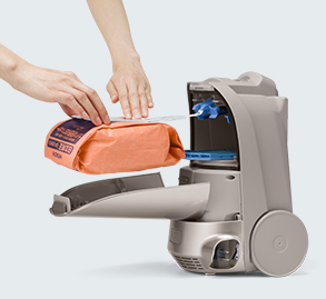 紙パックがごみで満杯に膨らんだ状態でも簡単に取り出せます。