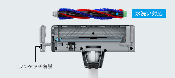 *1 【試験方法】人毛(長さ約30cm)0.25gを3畳のフローリングにランダムにまき、強運転で吸引する。これを10サイクル行う。【試験結果】 回転部のブラシへのからみつく毛量(からみ質量比)が1サイクルにつき5%以下。