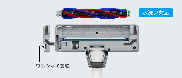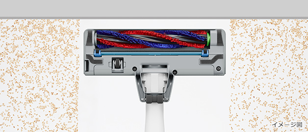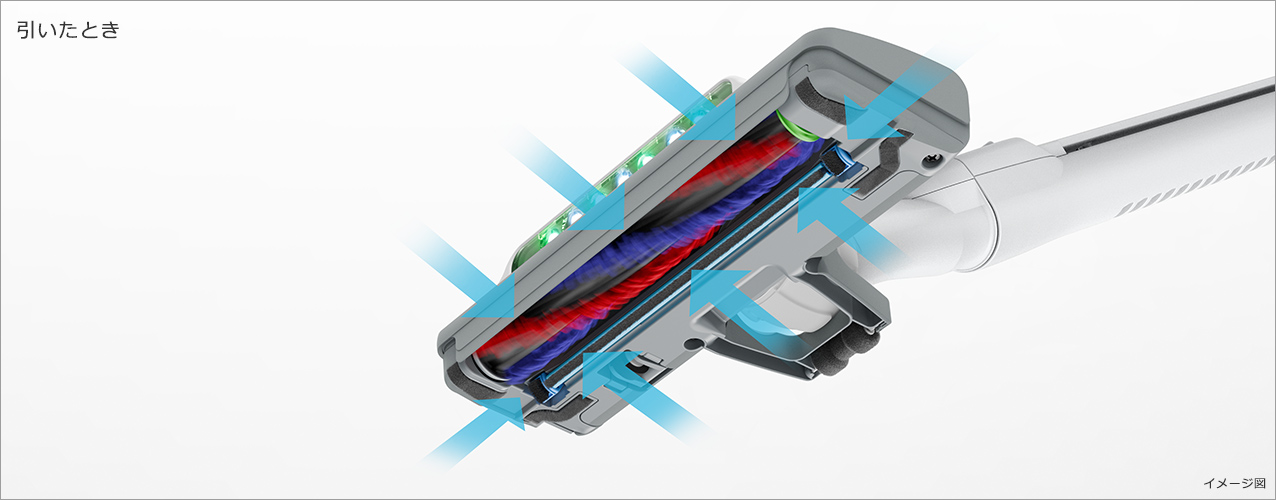 回転ブラシをヘッドの前側に近づけて配置することで、壁ぎわのごみもスッキリ。
