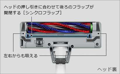 前方、後方だけでなく、左右からもごみを吸い込む[4方向吸引機構]を採用。壁ぎわのごみも吸い込みます。