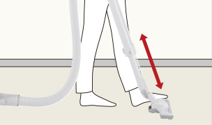 ヘッドを踏んで手元のレバーを引くと、パイプの長さを簡単に調整できます。