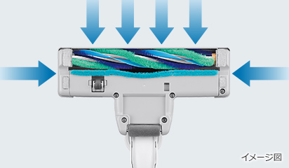 前、左右からごみを引き寄せ、壁ぎわのごみも吸い込みます。