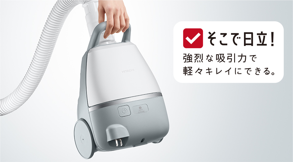 ヘッドが左右90度曲がって、壁ぎわや狭い場所もラクにお掃除。