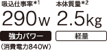 小型のモーターでも、強力パワーを実現。しかも、吸込力が持続します。本体質量2.5kg*2の軽量ボディとこだわりの使いやすさで移動や取り回しなど毎日のお掃除がラクにできます。