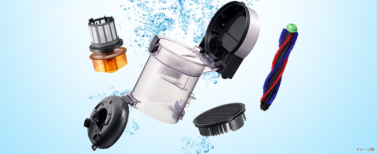 ダストケースは分解でき、水洗い可能、[からまんブラシ]もヘッドから取り外し、水洗いできます。