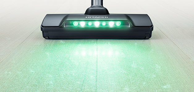 日立はLEDライトにもっとも明るく感じる波長に近い「緑色」を採用。暗いところはもちろん明るいところでも、見えにくいごみを浮かび上がらせます。