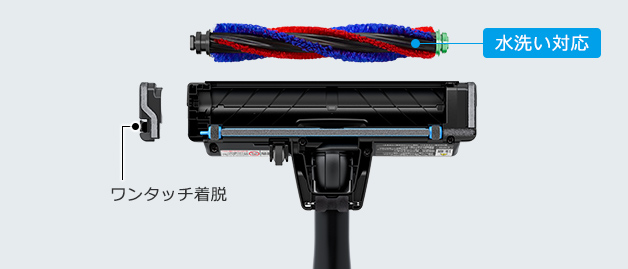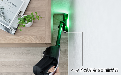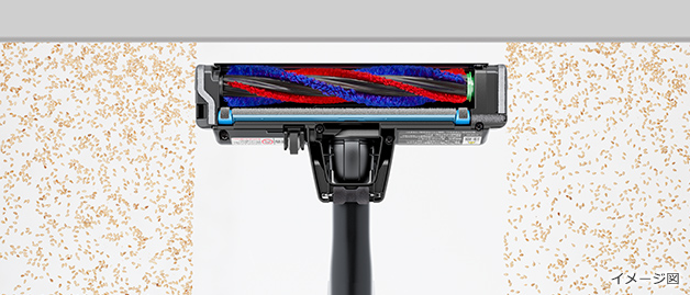 回転ブラシをヘッドの前側に近づけて配置することで、壁ぎわのごみもスッキリ。