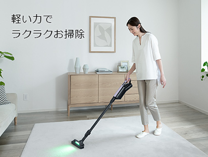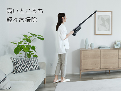 アルミを採用した小型・軽量のファンモーターを搭載するなど、軽量コンパクトを追求。さらに、2WAYで使えるハンドルだから高いところの掃除もラクラク。