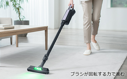 回転ブラシをヘッドの前側に近づけて配置することで、壁ぎわのごみもスッキリ。