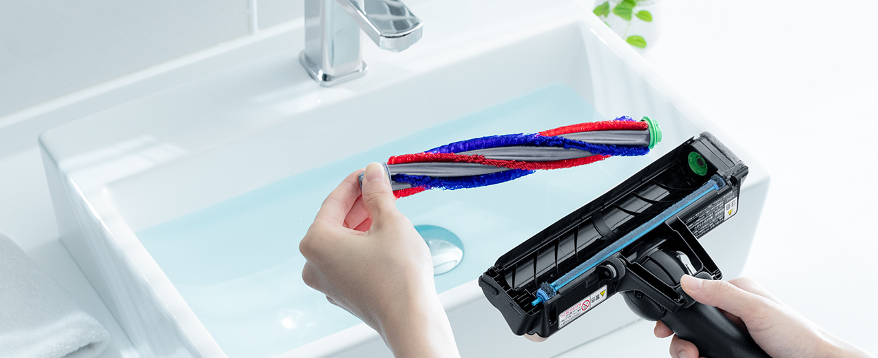 ブラシの先端をループ形状にすることで髪の毛などがからまりにくくなり、スッキリ吸引。お手入れもラクラク。