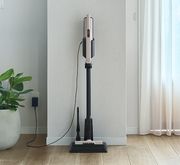 *1 【試験方法】人毛(長さ約30cm)0.25gを3畳のフローリングにランダムにまき、強運転で吸引する。これを10サイクル行う。【試験結果】回転部のブラシへのからみつく毛量(からみ質量比)が1サイクルにつき5%以下。