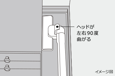 場所に合わせてブラシを押し出して使えます。ブラシを戻すと狭いすき間にも便利。