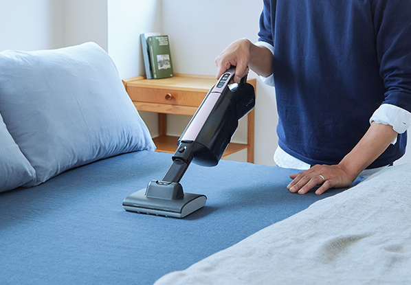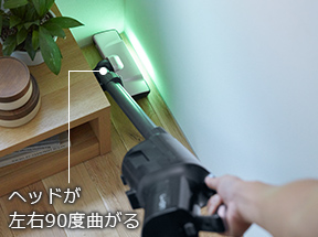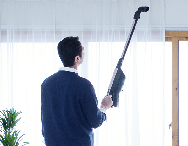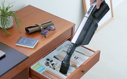 カーテンや引き出しの中、サッシの溝など、掃きながらキレイにできます。