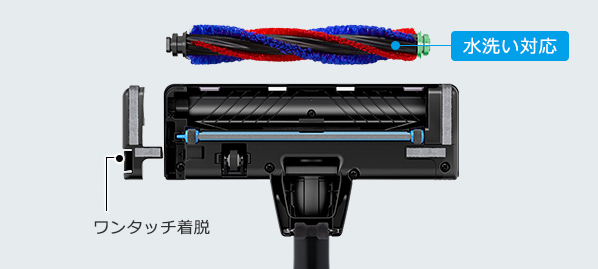 *1 【試験方法】人毛(長さ約30cm)0.25gを3畳のフローリングにランダムにまき、強運転で吸引する。これを10サイクル行う。【試験結果】回転部のブラシへのからみつく毛量(からみ質量比)が1サイクルにつき5%以下。