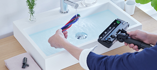 チューブ状の吸込口で、クリップなど小物を吸わずにごみを吸引。