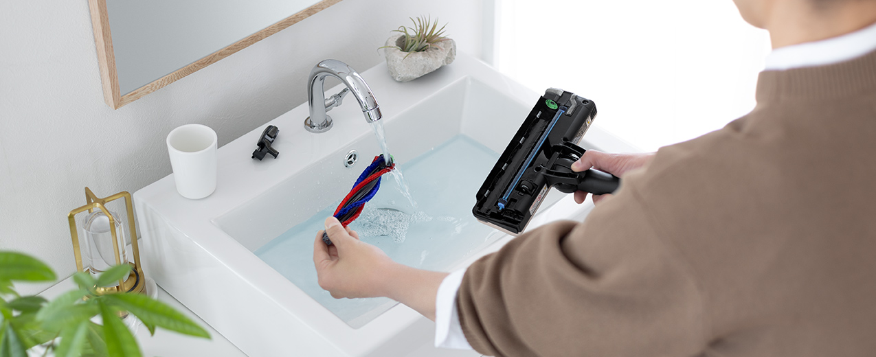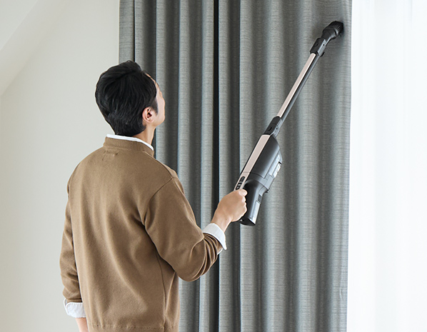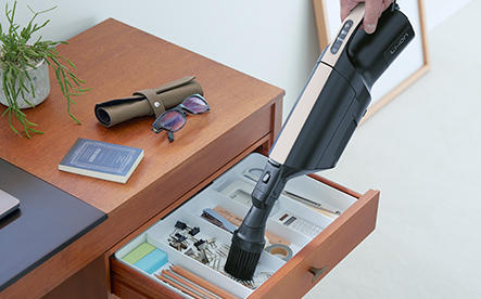 カーテンや引き出しの中、サッシの溝など、掃きながらキレイにできます。
