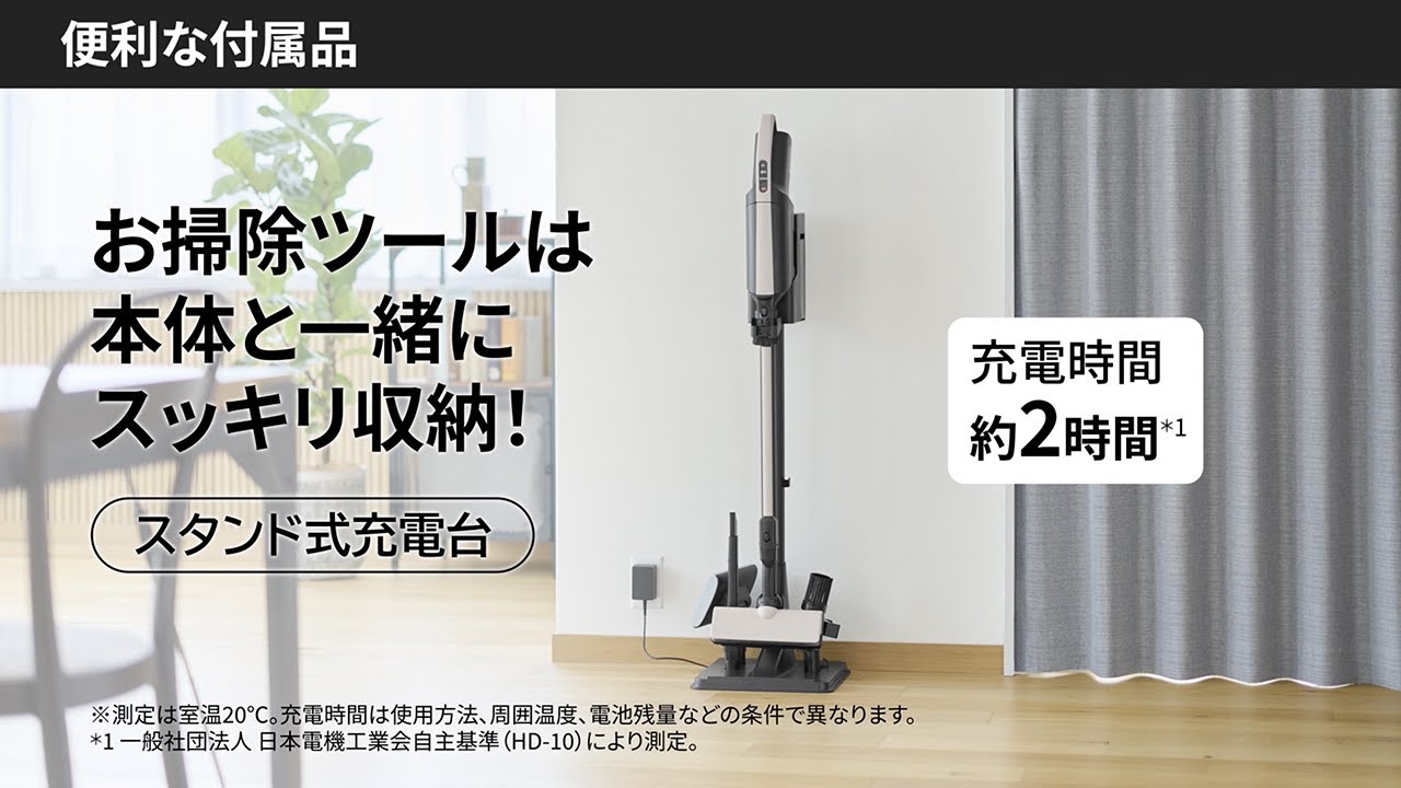 ※1 当社調べ。強運転を使用し、犬の毛で試験しています。ペットの種類や毛質・毛量、掃除する布地の種類、周囲環境などの条件によって効果は異なります。