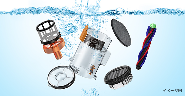 ダストケースは分解でき、水洗い可能。[からまんブラシ]もヘッドから取り外し、水洗いできます。