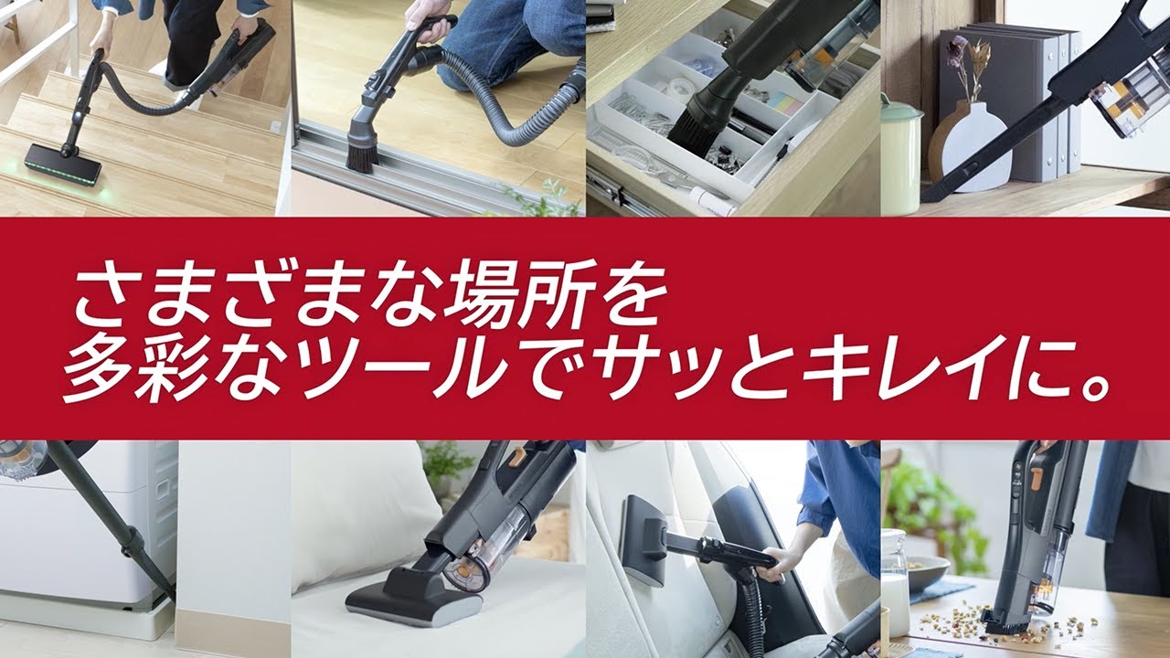 おうちのいろんな場所をスッキリ。床はもちろん、高いところや車のシートなど掃除しにくい場所まで、ツールを組み合わせてラクにキレイにできます。