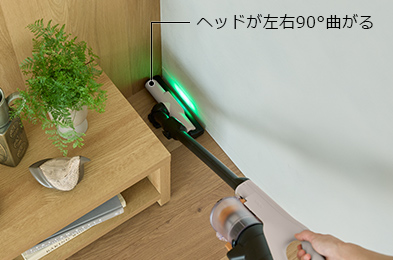 掃除しにくい壁ぎわや狭い場所もラクにお掃除。