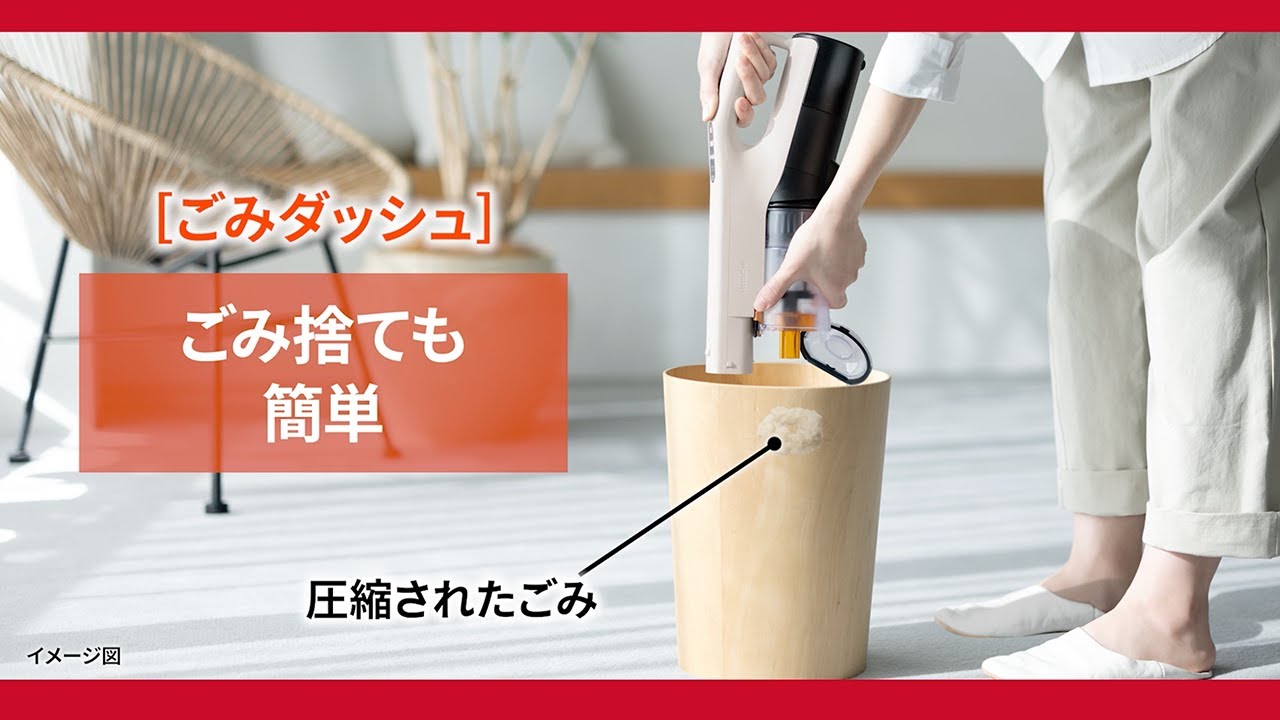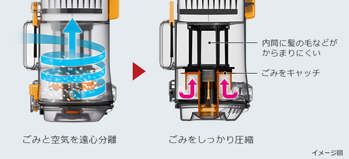 空気の流れを利用してダストケース下部に集めたごみをしっかり圧縮します。