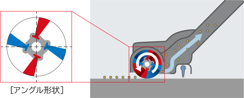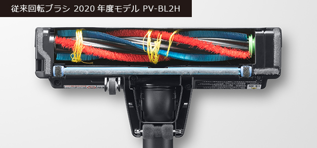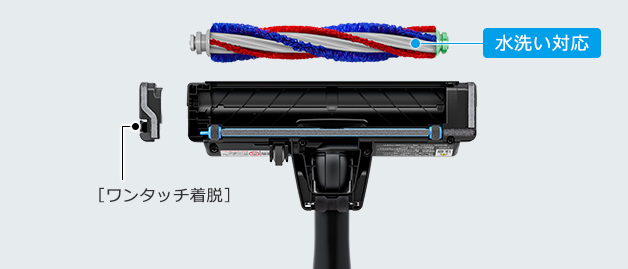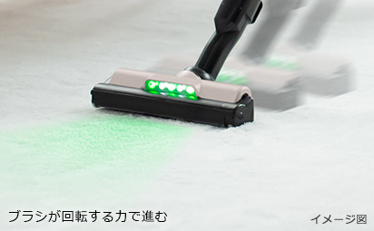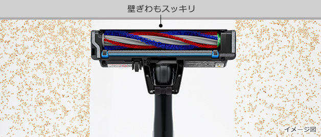 回転ブラシをヘッドの前側に近づけて配置することで、壁ぎわのごみもスッキリ。