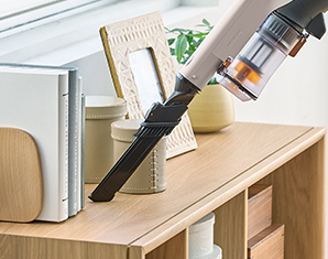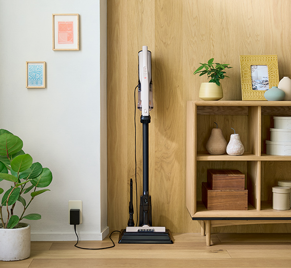 *1 【試験方法】人毛(長さ約30cm)0.25gを3畳のフローリングにランダムにまき、強運転で吸引する。これを10サイクル行う。【試験結果】回転部のブラシへのからみつく毛量(からみ質量比)が1サイクルにつき5%以下。