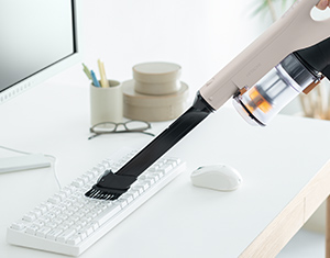 ブラシの先端をループ形状にすることで髪の毛などがからまりにくくなり、スッキリ吸引。お手入れもラクラク。