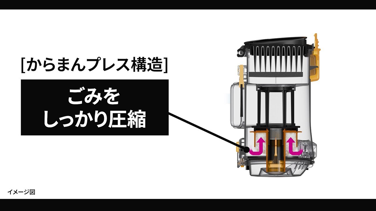 空気の流れを利用してダストケース下部に集めたごみをしっかり圧縮します。