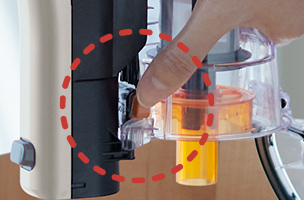 ダストケースを外さずに、ボタンを押せば圧縮されたごみを捨てられるので、ほこりの舞い上がりを抑えます。