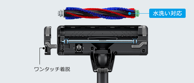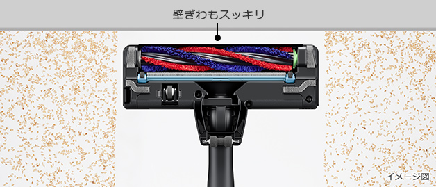 回転ブラシをヘッドの前側に近づけて配置することで、壁ぎわのごみもスッキリ。