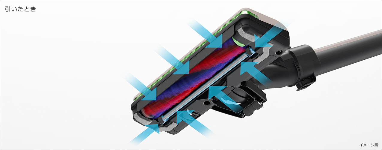前方、後方だけでなく、左右からもごみを吸い込む[4方向吸引機構]を採用。壁ぎわのごみも吸い込みます。