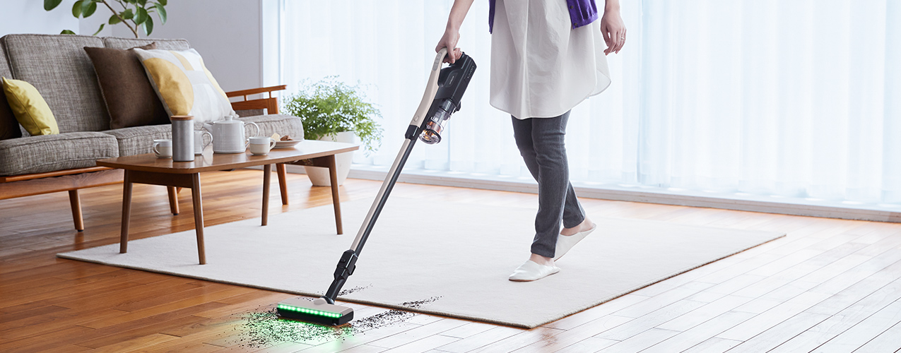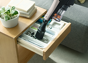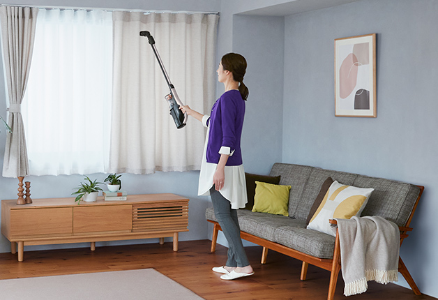 カーテンや引き出しの中、サッシの溝など、掃きながらキレイにできます。