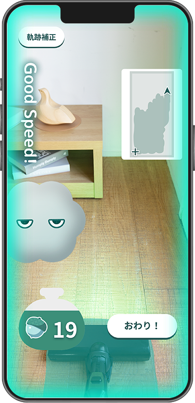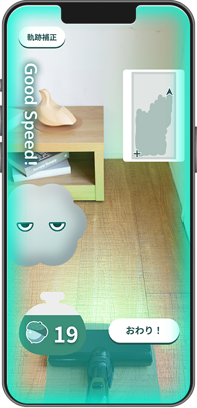 ※ARおそうじ中はスマートフォンの画面を注視しないでください。また、必ず周囲の安全を確かめたうえでARおそうじを使用してください。
