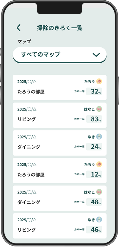 アプリ画面でどこを掃除したか見えるから