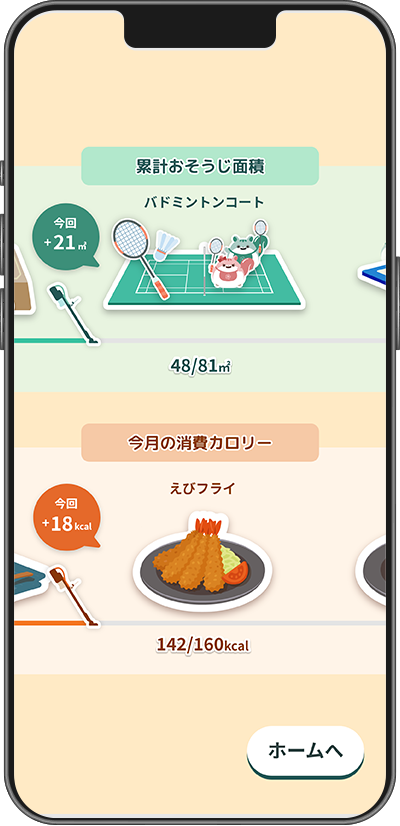掃除後は掃除結果をスコアや