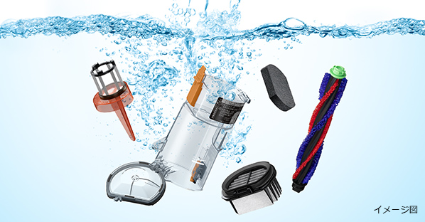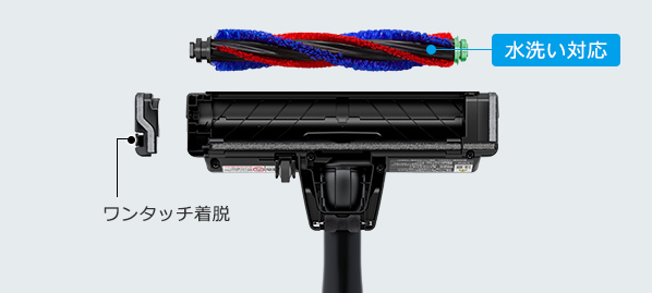 ダストケースは分解でき、水洗い可能。[からまんブラシ]もヘッドから取り外し、水洗いできます。