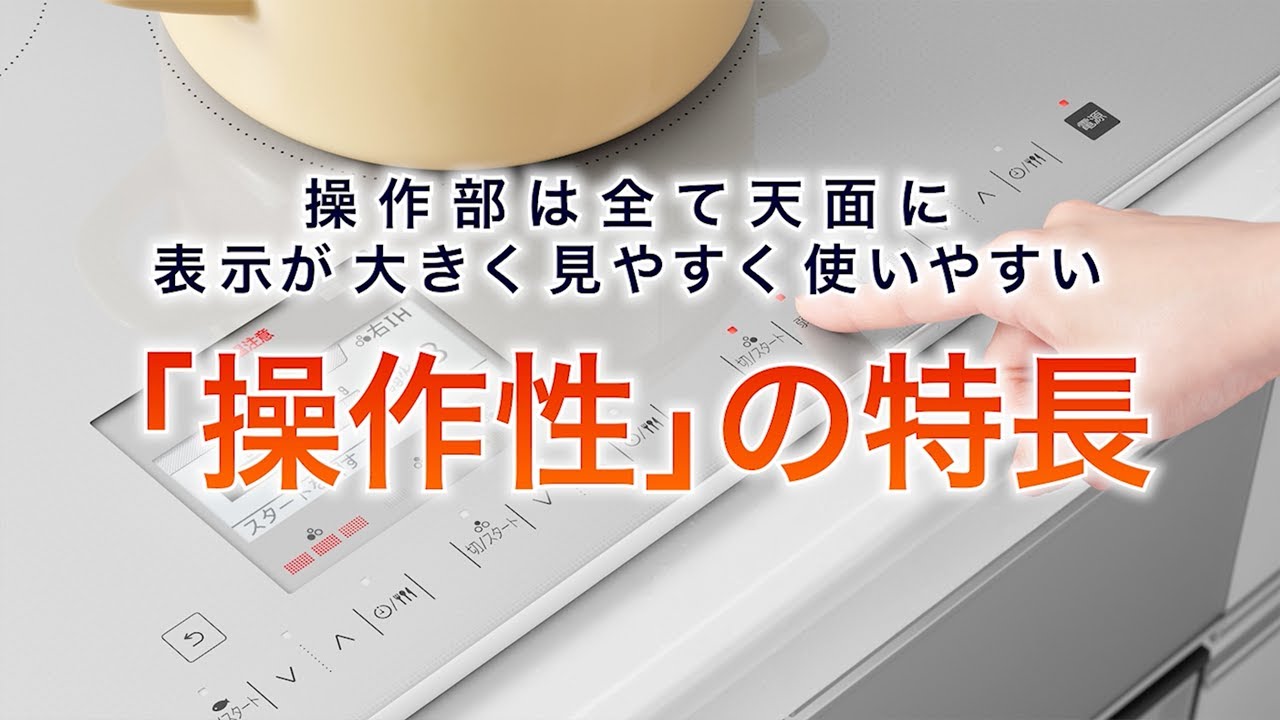 大きな文字とイメージしやすいイラスト表示。この画面ですべて(左右中央IH、グリル)の設定と運転状態が確認できます。