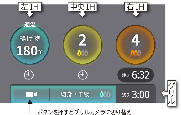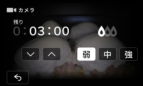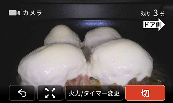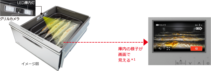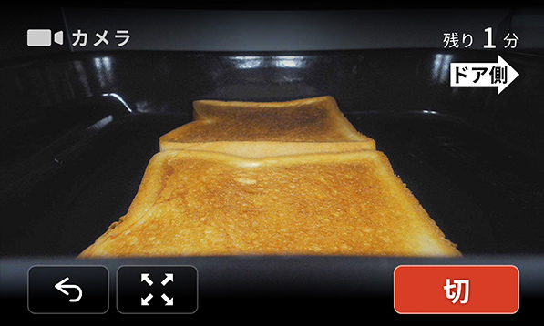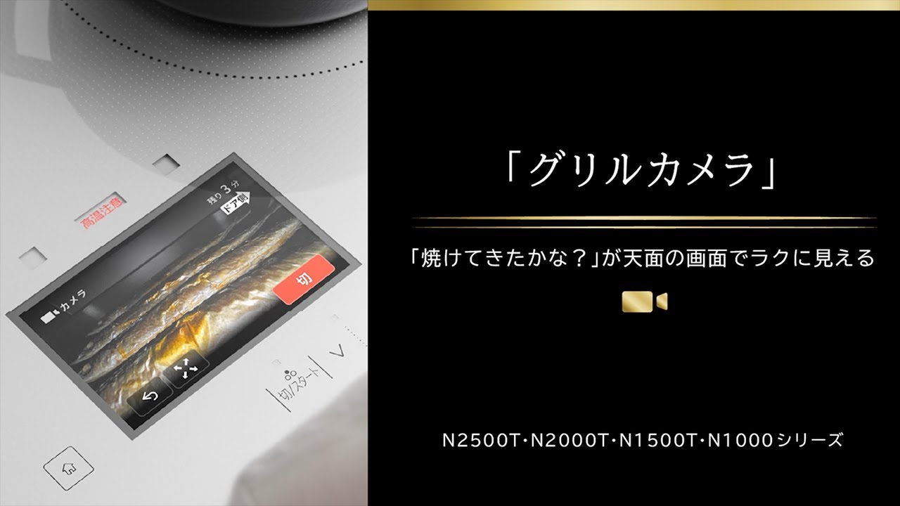 新開発のグリルカメラが庫内を左側面から撮影。食材の様子を天面の画面でライブで見られます。