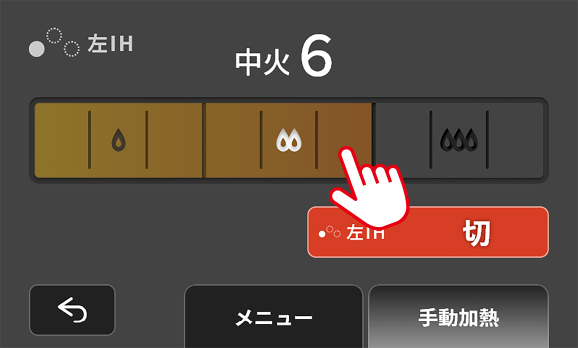 〇複数のIHやグリルを同時に使う場合は、総消費電力が5.8kW(設置時に4.8kWに切り替えた場合は4.8kW、「節電モード」で総消費電力を5.8kWから4.8kWまたは4.0kWに切り替えた場合は、設定した総消費電力)を超えないように自動的に火力を制限します。「ピピピッ」と鳴って火力が上げられない場合やボタンを押してもスタートできない場合は他のヒーターの火力を下げてから再操作してください。