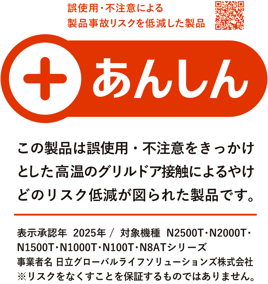 2層の遮熱層と冷却層を設けた3層構造を採用。遮熱層でグリル庫内の熱を遮熱しながら、冷却層内に空気の流れを設け、自然対流で暖められた空気を排出(放熱)することで、表面の温度上昇を抑制する日立独自の放熱技術を採用したグリルドアです。