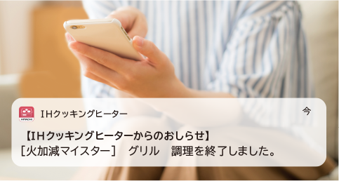 プッシュ通知でグリルの調理終了などをお知らせ。